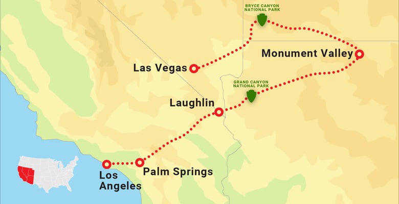 Explore os desertos solitários, as cidades vibrantes, os cânions profundos e majestosas montanhas. Prepare-se para uma aventura de oito dias, explorando o sudoeste dos Estados Unidos. Nesta jornada inesquecível, você terá a oportunidade de visitar destinos icônicos, como o Grand Canyon, o Bryce Canyon, o Monument Valley, Los Angeles e Las Vegas.